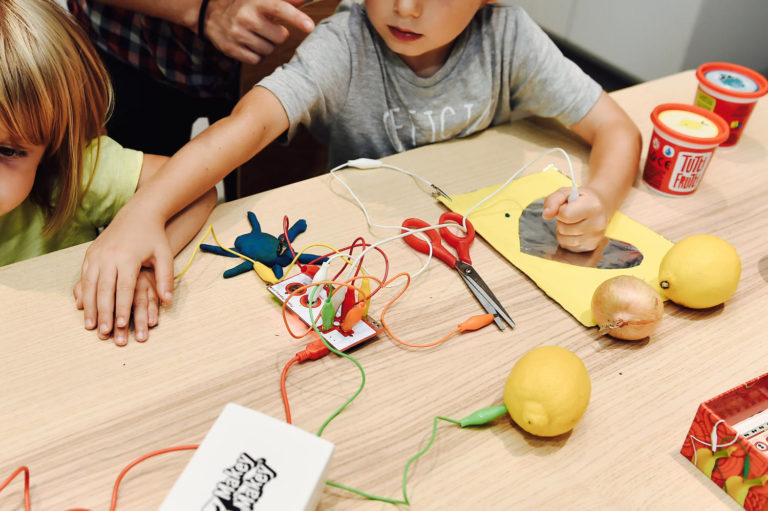 Lors de ce stage, les jeunes vont réaliser à l’aide du Makey Makey de nombreux instruments de musique en matière recyclée (batterie, tapis musical, synthétiseur, etc.) mais aussi des jeux électroniques,